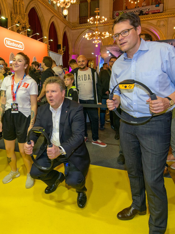 GamceCity 2019, Freitag Tag 1, Rathaus, Wien, 18.10.2019 - Bürgermeister Michael LUDWIG und Stadtradt Jürgen CZERNOHORSZKY besuchen die Game City